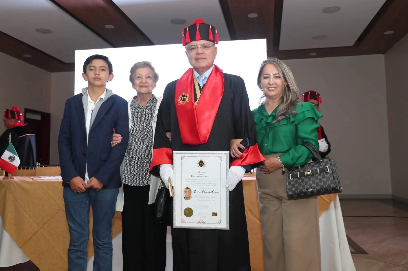 El Magistral Nombramiento de distinción oficial del Grado Honorífico de Doctor Honoris Causa, como Título e Investidura, es otorgado por la Universidad Gestalt de la Ciudad de México, con más de 42 años de trayectoria académica.